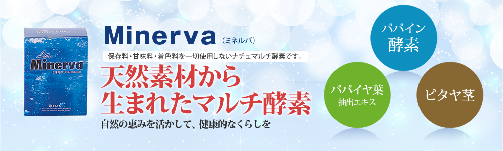 生命活動の全てにおいて不可欠な存在である酵素。この大切な酵素は20歳前後をピークに体内から少しずつ減少し不足気味になります。それをサポートするのがマルチ酵素「ミネルバ」です。